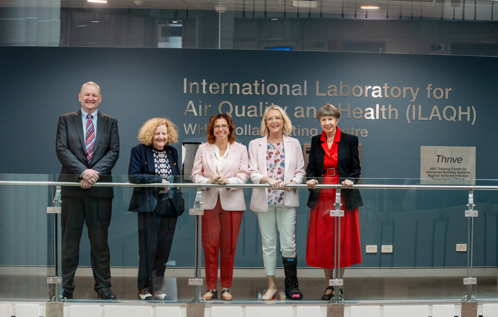 The Honourable Amanda Rishworth, Federal Minister for Employment and Workplace Relations, and Ms. Madonna Jarrett, Member for Brisbane visited ILAQH and THRIVE, at QUT (Queensland University of Technology) on April 14 to learn about safe indoor air for Australian workers.
