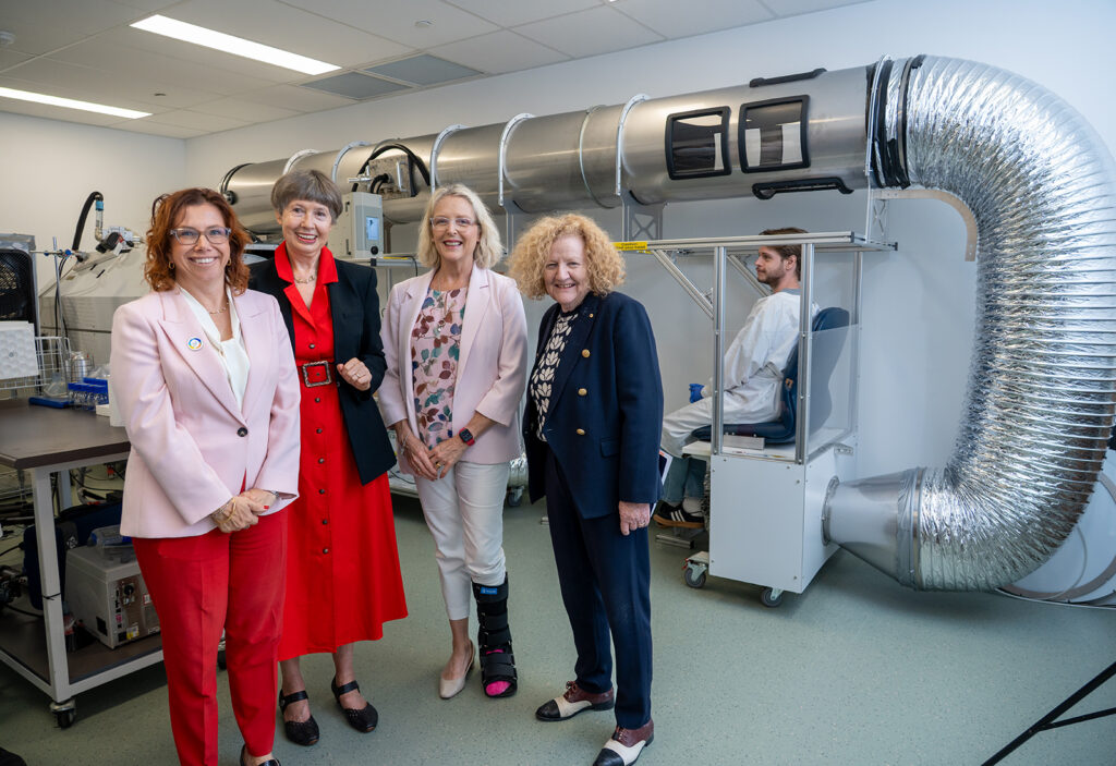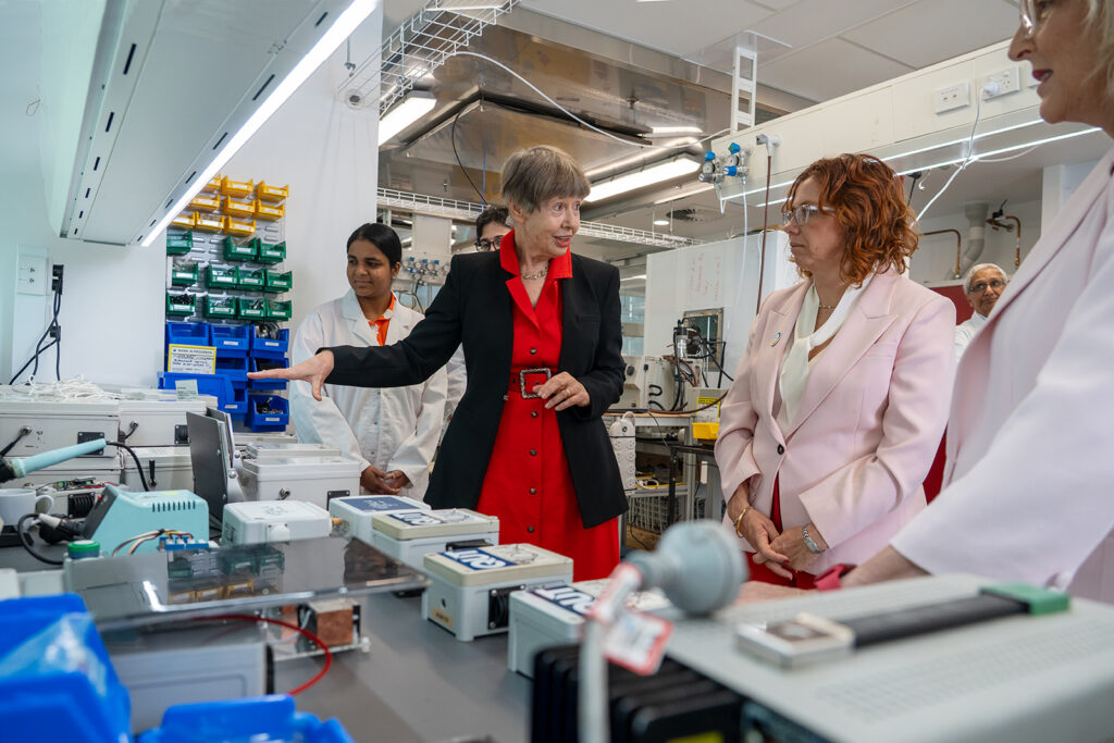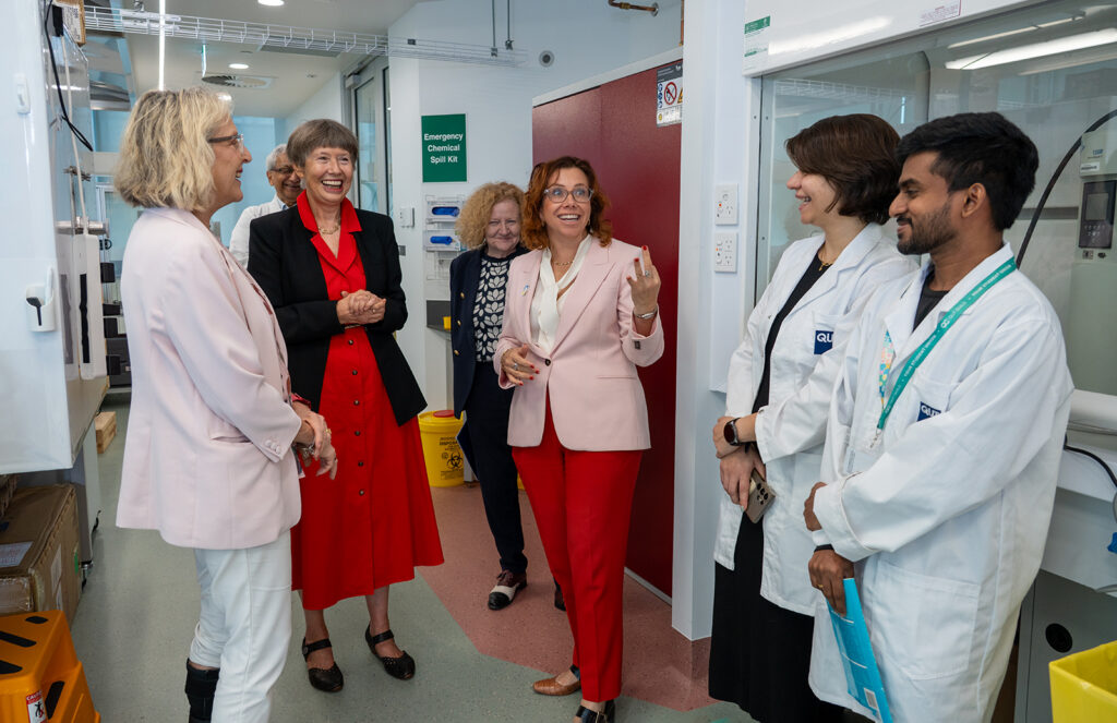 Our Centre Director, Professor Lidia Morawska, briefed the Ministers on one of THRIVE’s most significant projects from a policy perspective: P-Block Project “The first the first building in the world to meet the proposed IAQ standards”. Our team then gave visitors a tour of our laboratories and emphasised our research on particles from human respiratory activities, which laid the scientific basis for understanding airborne infection transmission, and current research on low-cost sensors for indoor air quality compliance monitoring.