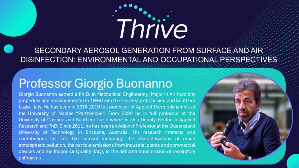 Please join us for our upcoming Thrive webinar with Professor Giorgio Buonanno of the University of Casino and Southern Lazio, Italy, for his presentation titled: