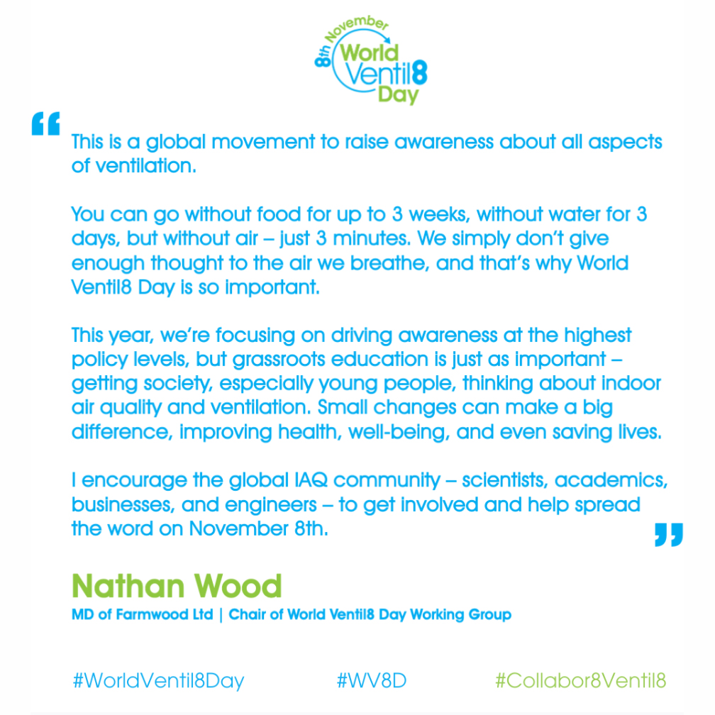 Taking place every year on 8 November, #WorldVentil8Day aims to raise awareness of the importance of ventilation as a crucial part of enabling health and wellbeing of people. It also seeks to recognise and celebrate the ventilation and indoor air quality community.